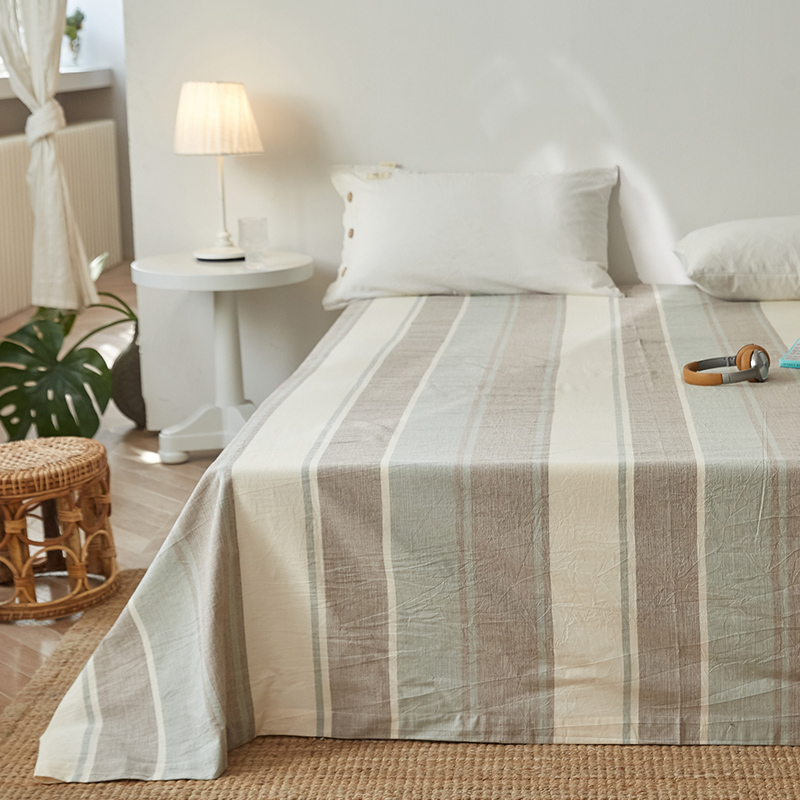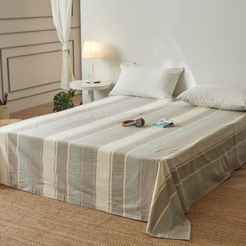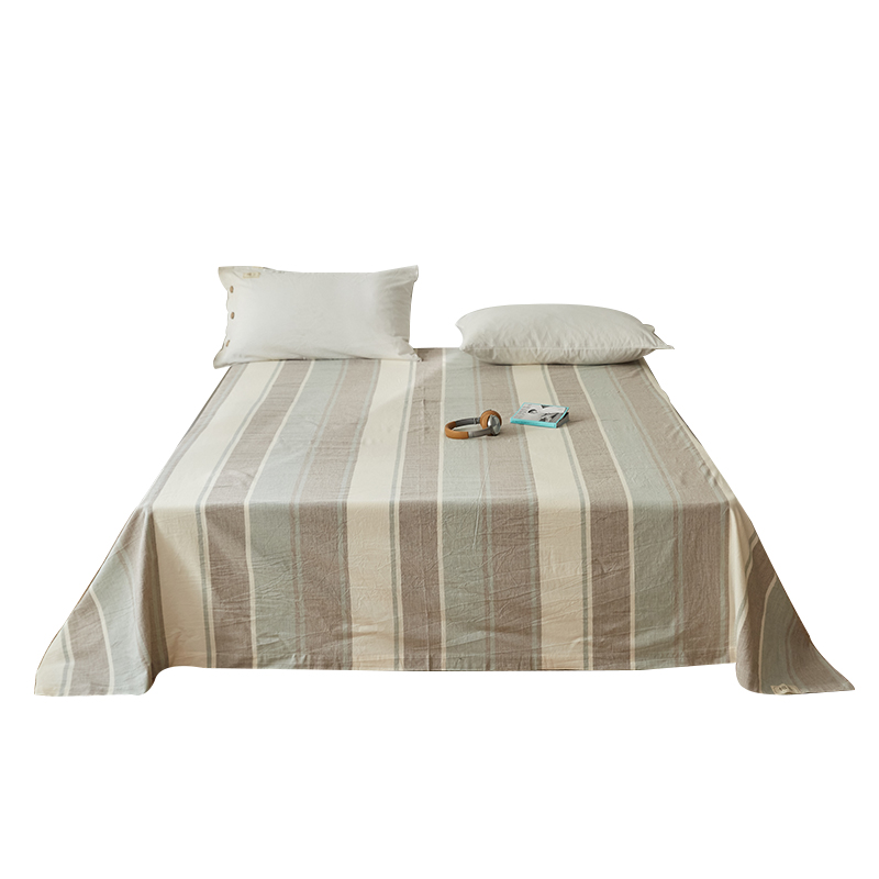 A类亚麻纯棉水洗棉床单单件裸睡夏季棉麻纯色条纹全棉被单三件套 - 赏涵韵旗舢店企业店