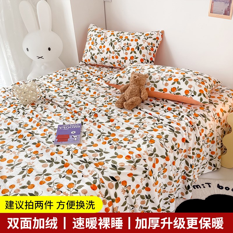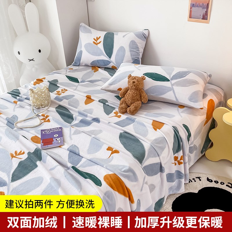 冬季加厚牛奶绒床单单件q法兰绒珊瑚绒毛毯被单单人加绒冬天1.5米