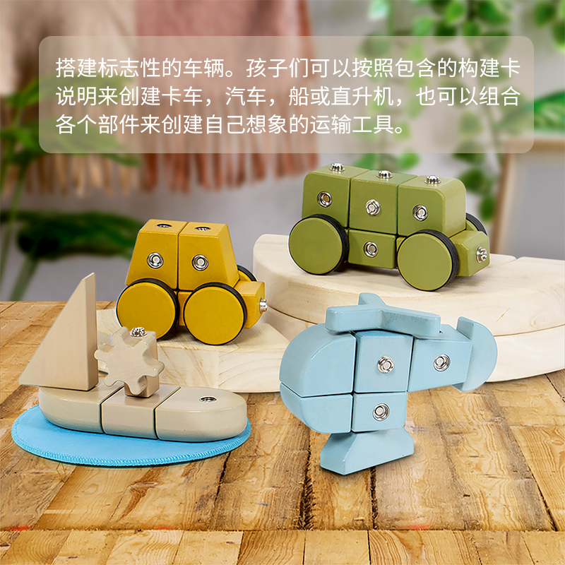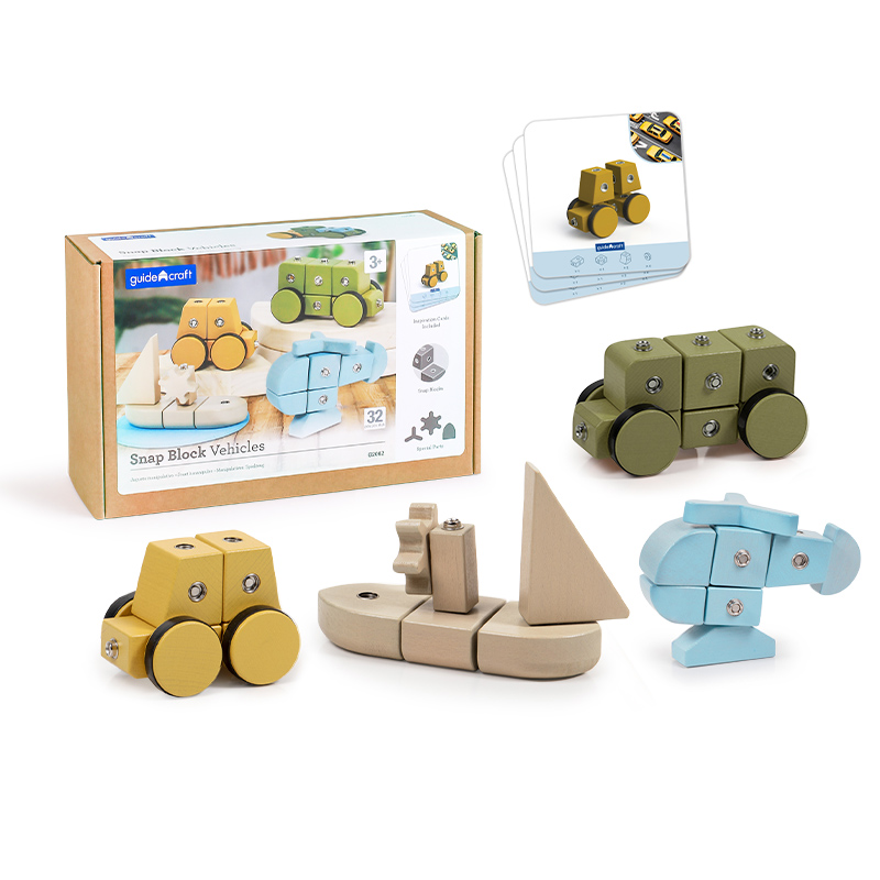 guidecraft按扣交通工具积木榉木儿童搭建积木创意拼插3-4岁教具