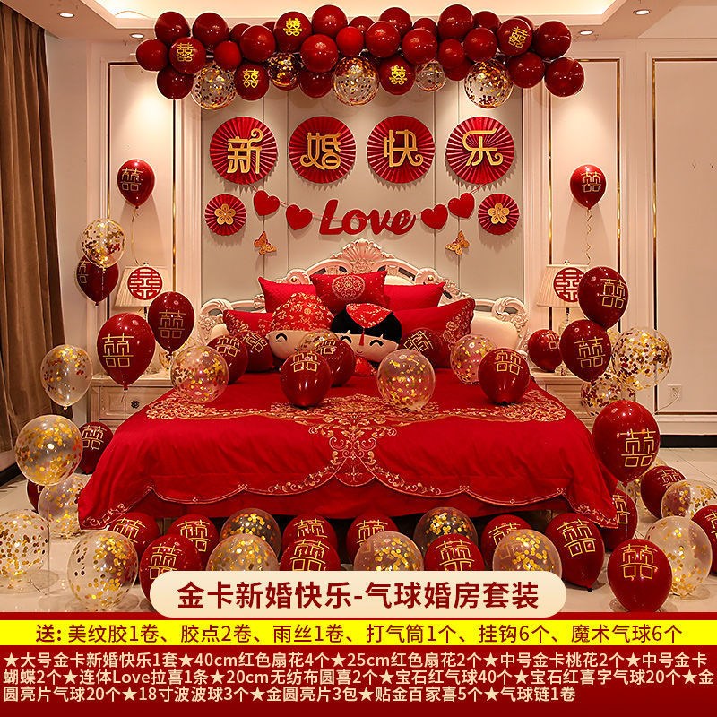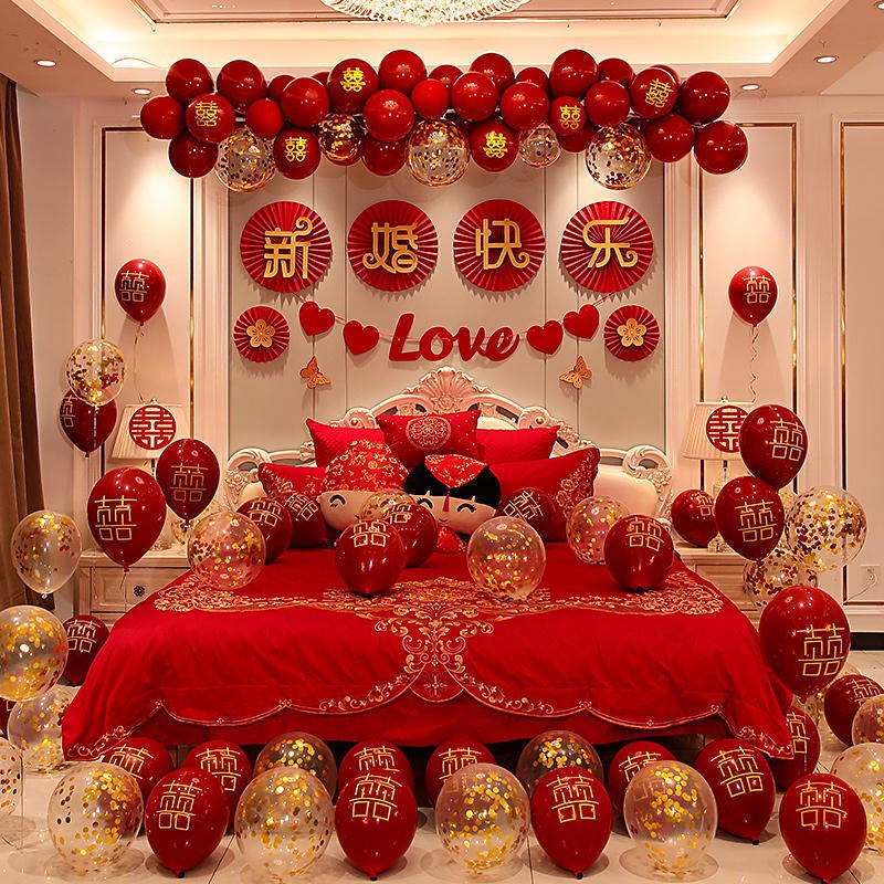 您的位置:他他商城  >   >  婚房装饰布置气球套装男方卧室女方新房拉旗彩带扇花婚礼结婚用品