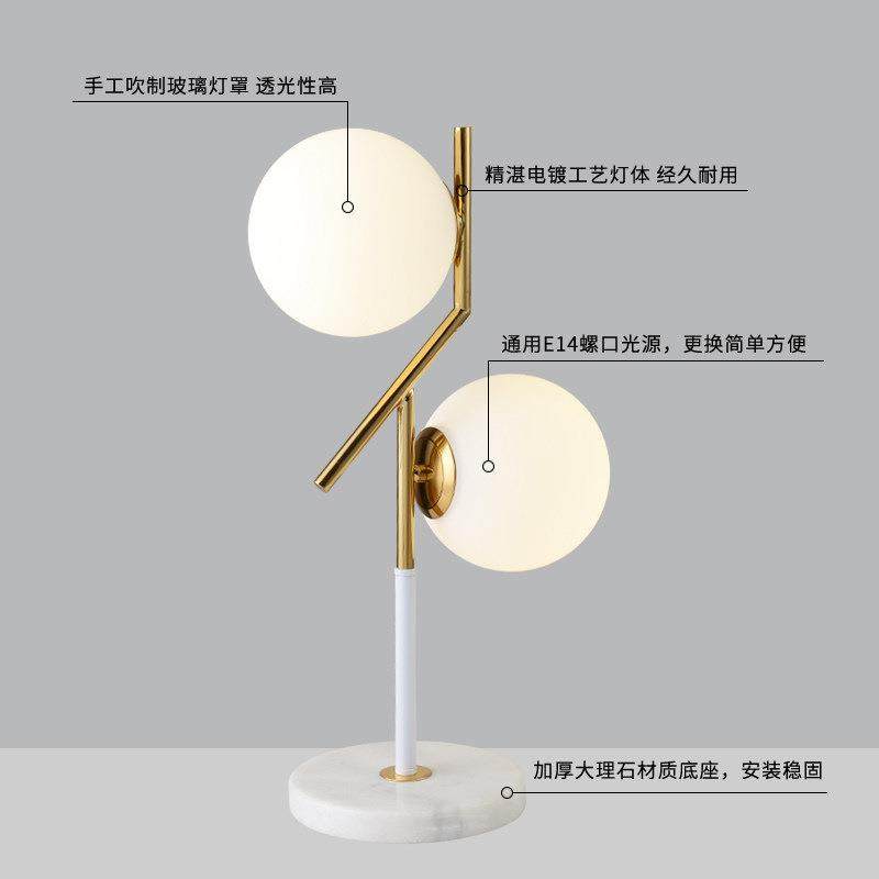 创意款现代玻璃北欧台灯大理石底座书房卧室台灯简约装饰台灯