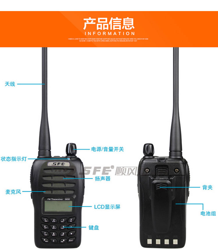 您的位置:他他商城  >   >  原装SFE顺风耳对讲机S850民用自驾游商场酒店手台