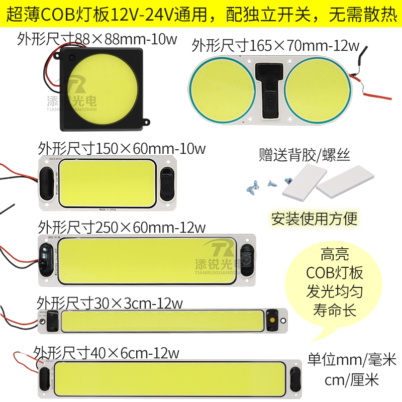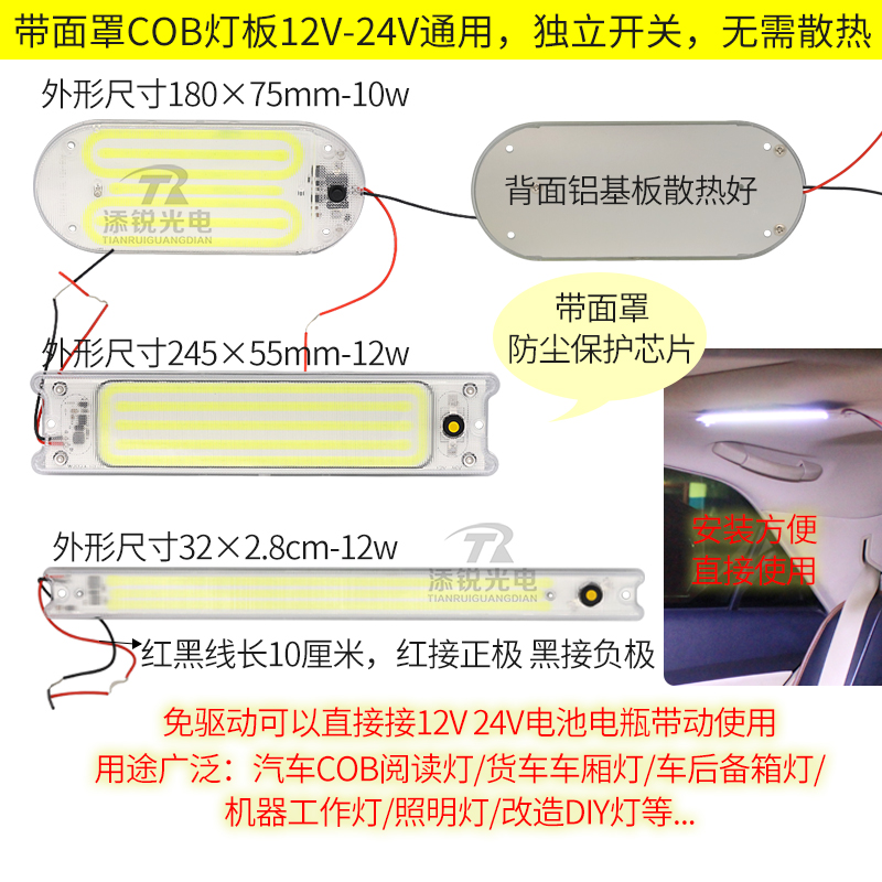 led灯板cob阅读灯12v24v电池电瓶灯货车车厢顶灯后备箱长方形灯板 - 深圳市添锐光电