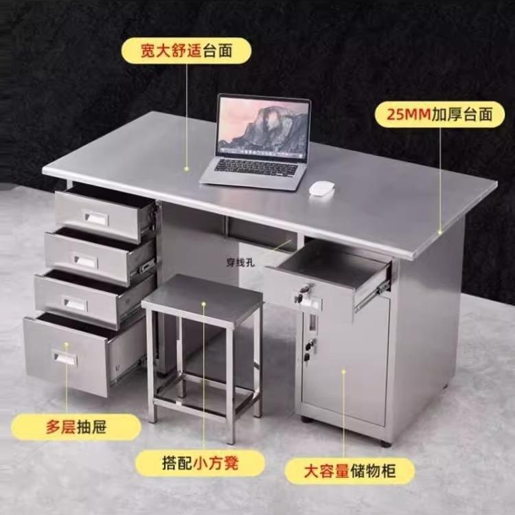 不锈钢办公桌电脑桌实验室工作台车间操作台带抽屉不锈钢桌子厂家 - 诺行百货店1