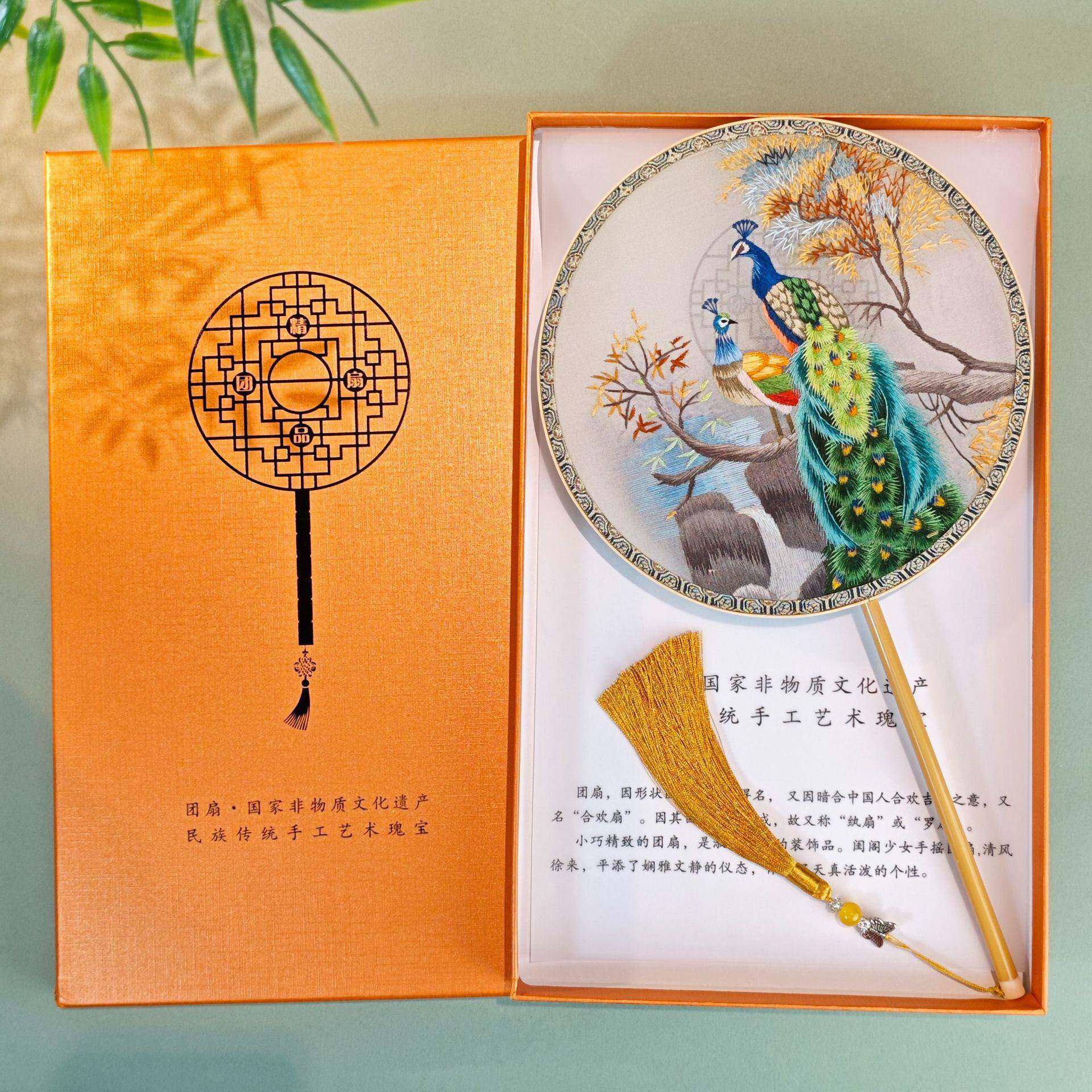 手BVD舞工苏绣团扇双绣花龙图案团扇古风蹈扇国风圆扇艺扇子面工