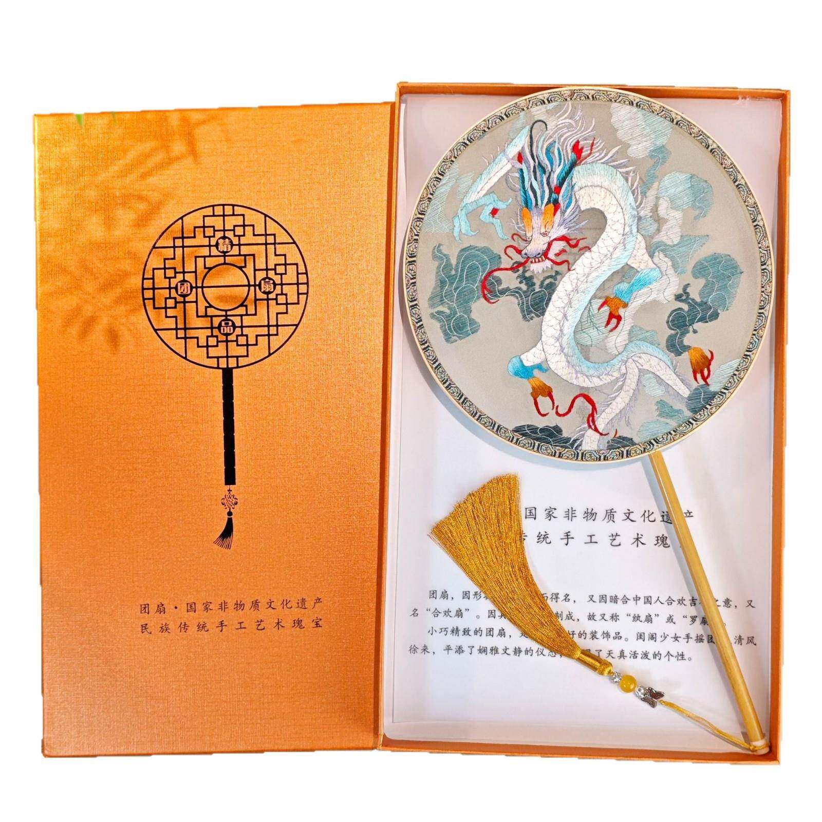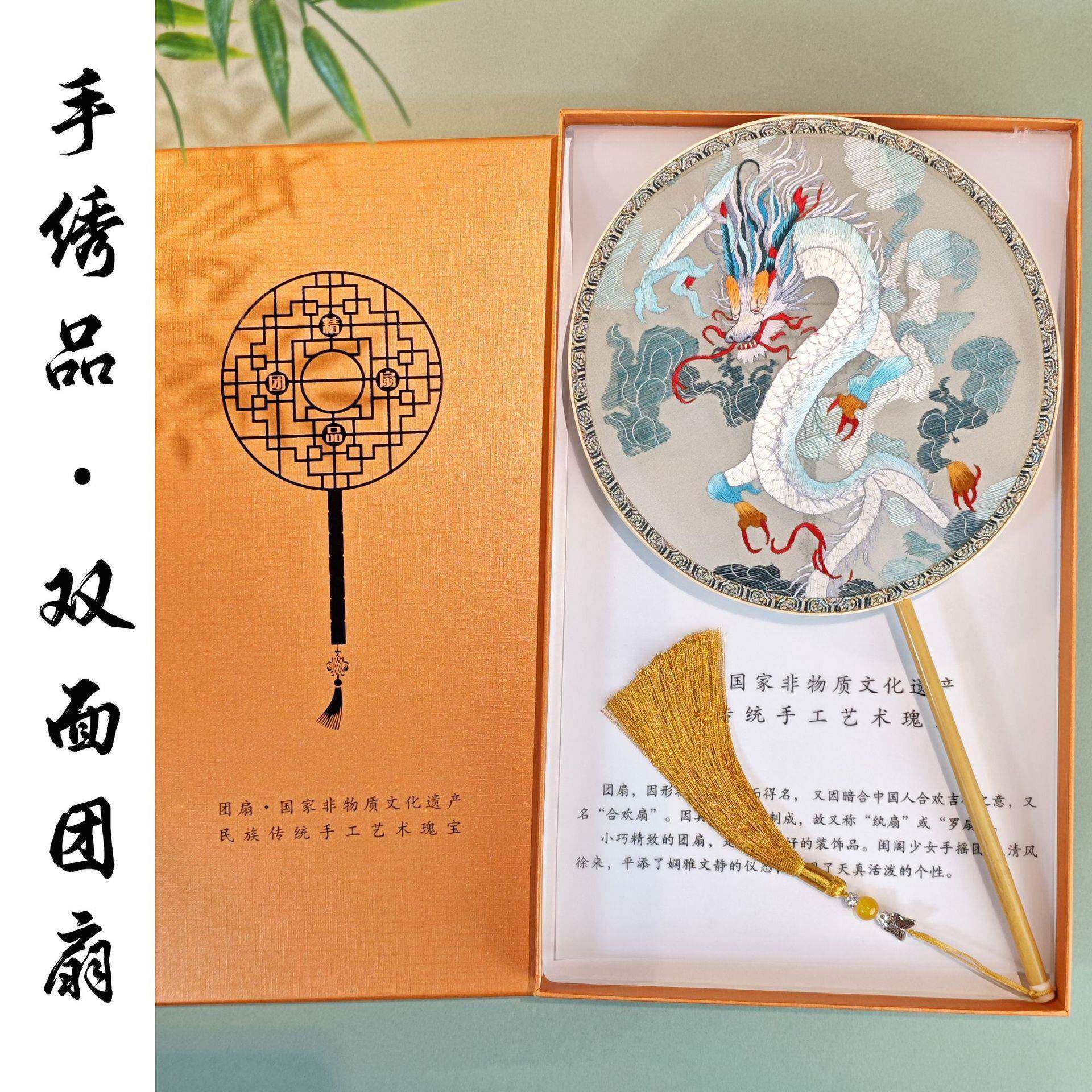 手BVD舞工苏绣团扇双绣花龙图案团扇古风蹈扇国风圆扇艺扇子面工 - 玖蓝工厂