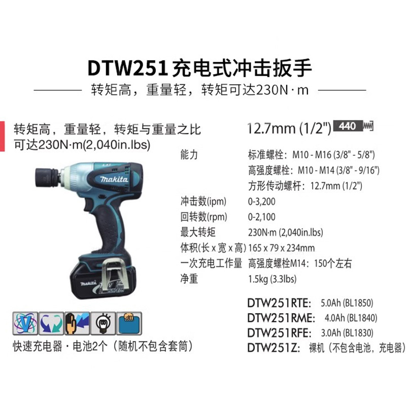 您的位置:他他商城  >   >  日本牧田锂电充电扳手冲击汽车脚手架子工木工套筒风炮DTW251RME
