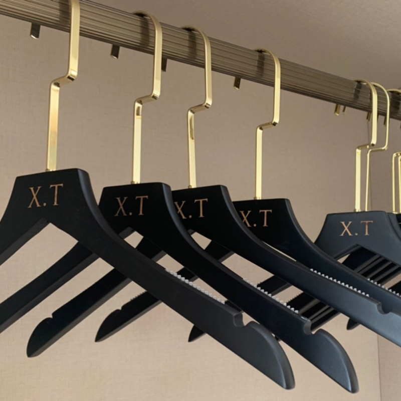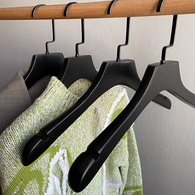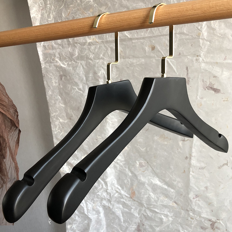 纯黑色实b木衣架衣挂婚纱店酒店家用男女服装店防滑无痕植绒质裤