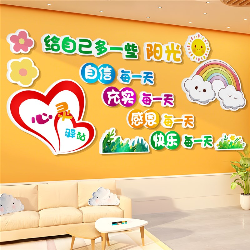 心理咨询a室文化墙装饰挂画心灵驿站心理辅导教室墙面布置挂图标