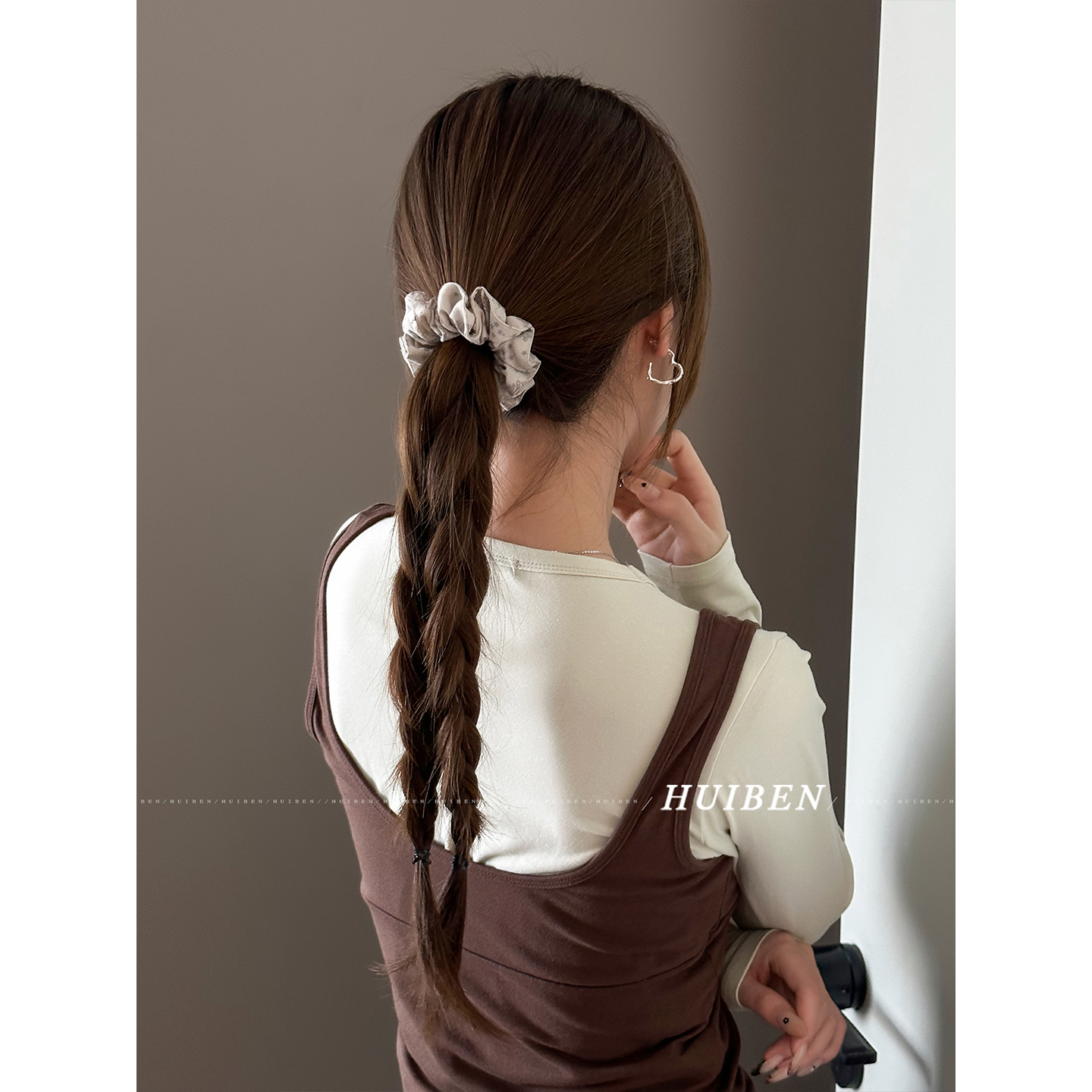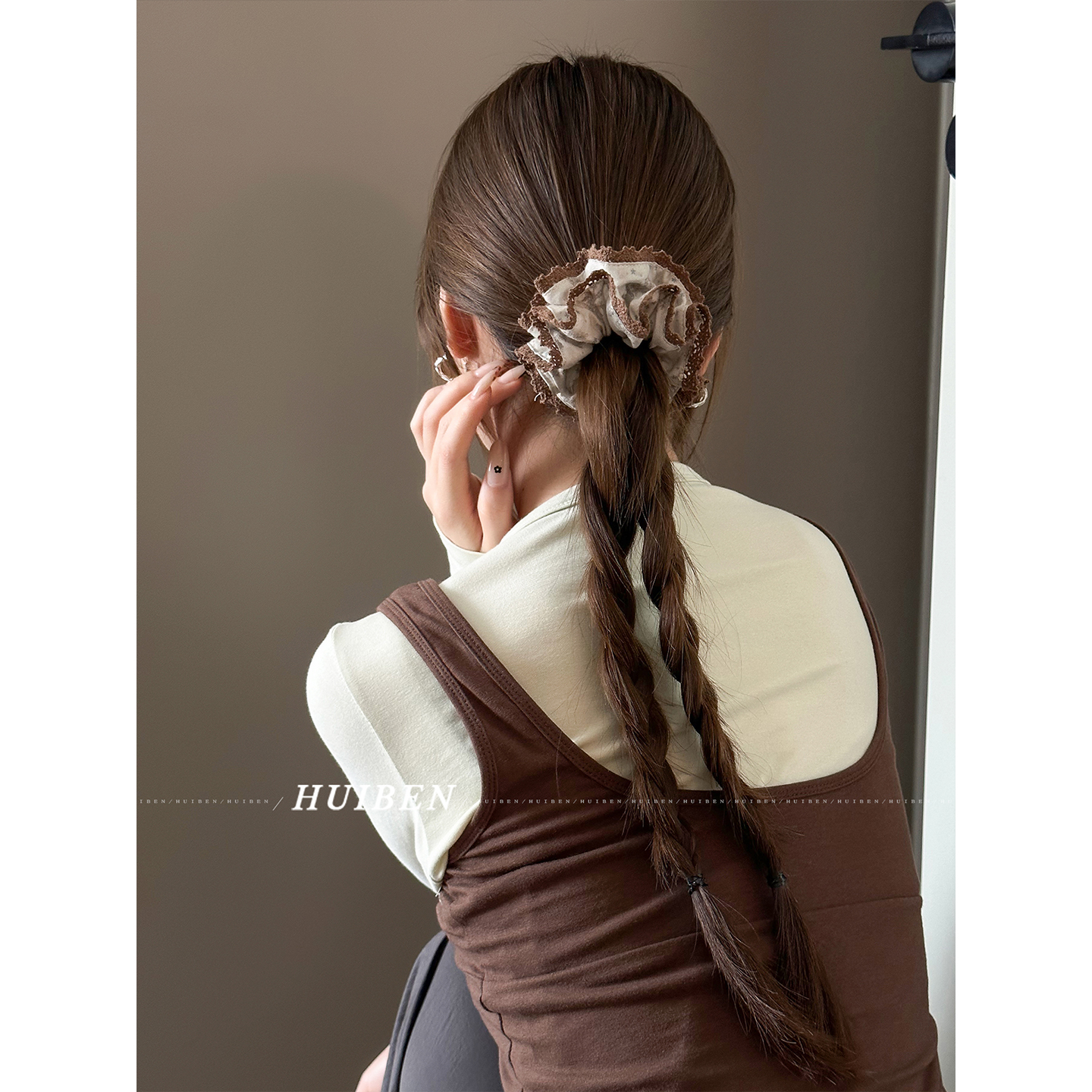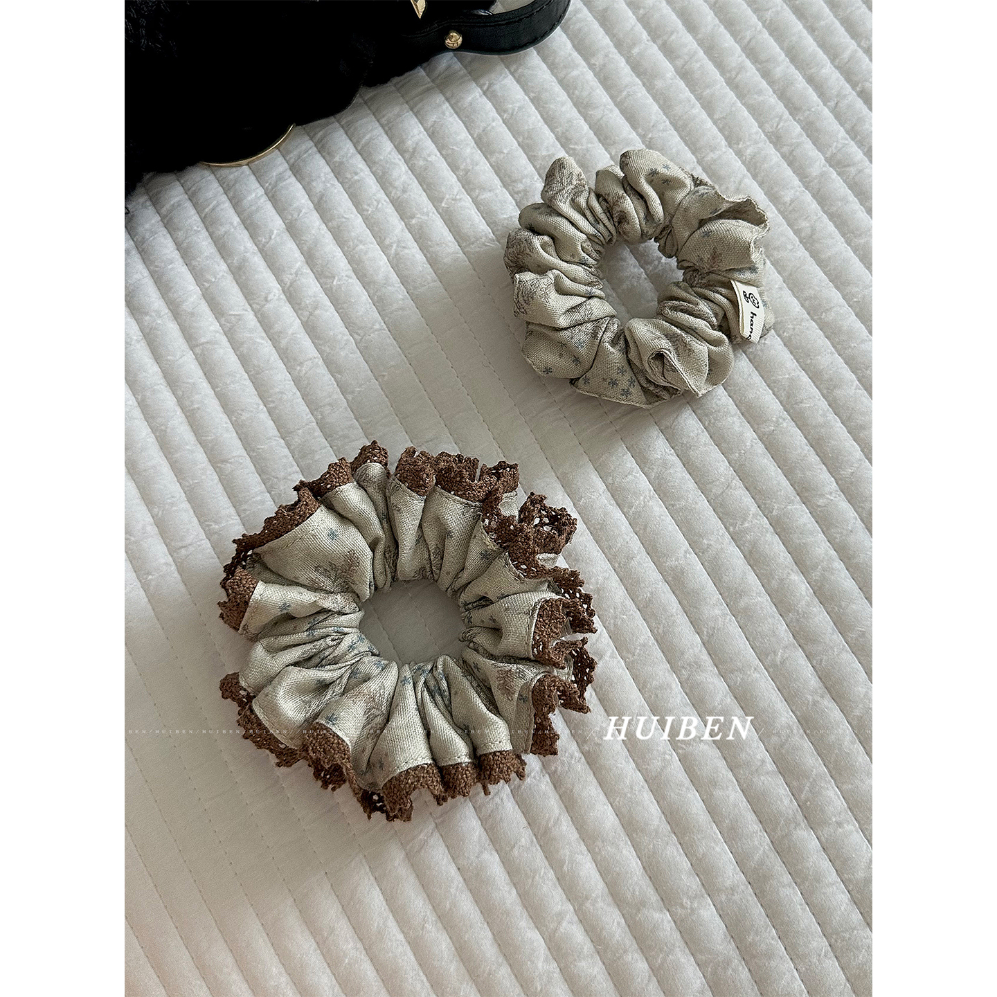 冷翠咖啡~素雅蕾丝边大肠发圈头绳女厚实耐用设计感头花马尾发绳 - HUI本慧