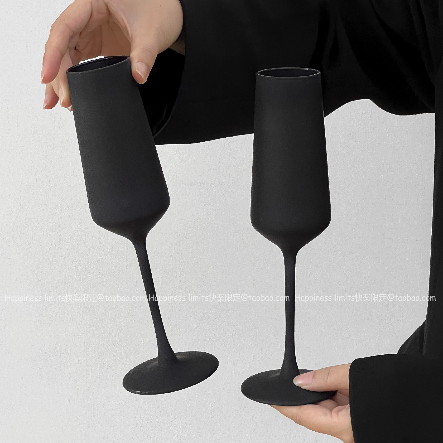 欧式磨砂黑香槟杯家用高级感创意玻璃杯红酒杯高脚杯起泡酒杯 - Happiness limits快楽限定