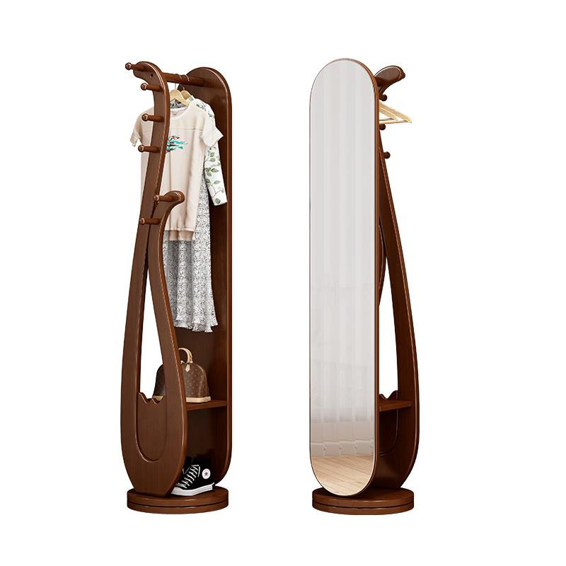 家用全身全身镜挂衣架一体实木可旋转置物简约新中式艺术衣帽架子 - 国联百货官营店