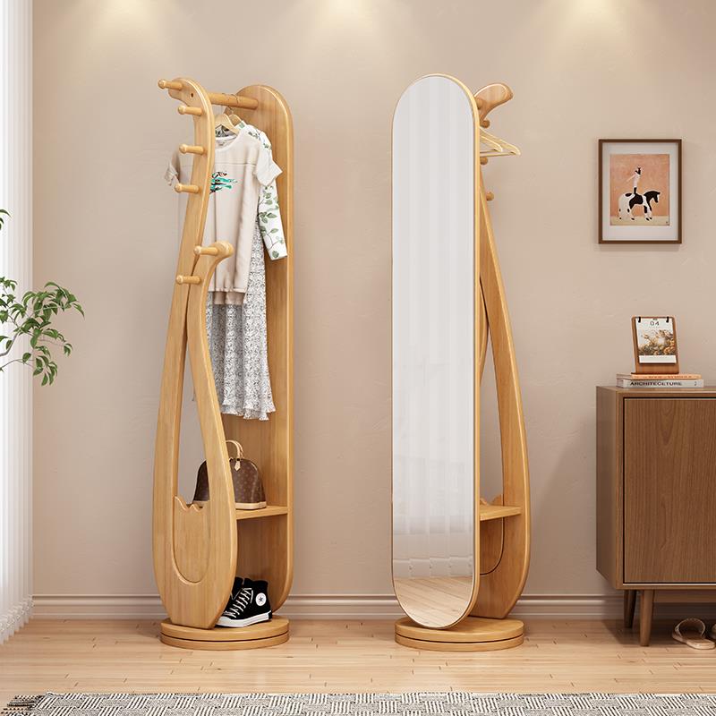 家用全身全身镜挂衣架一体实木可旋转置物简约新中式艺术衣帽架子