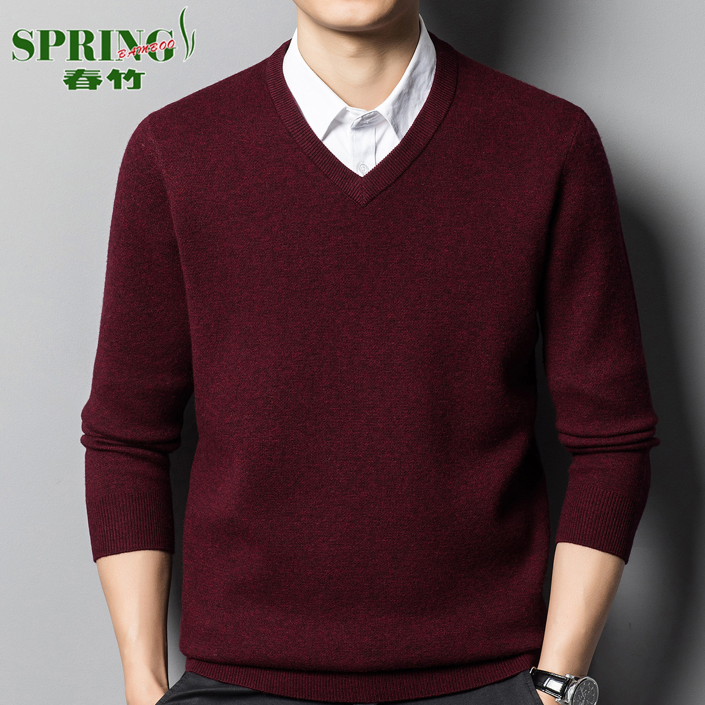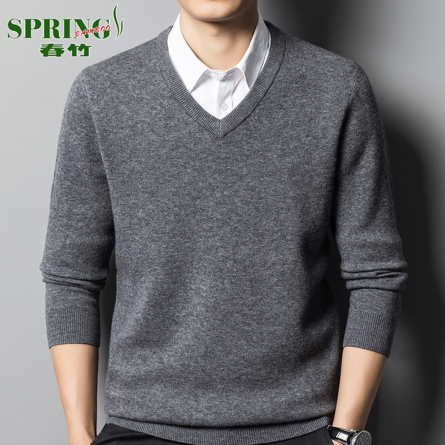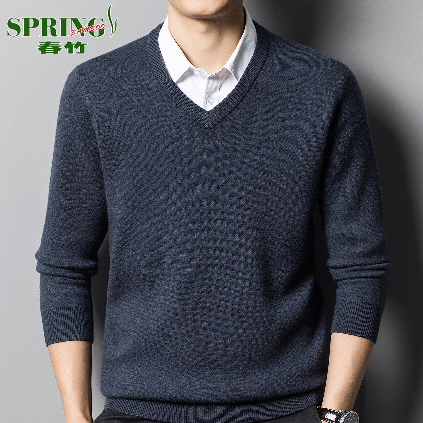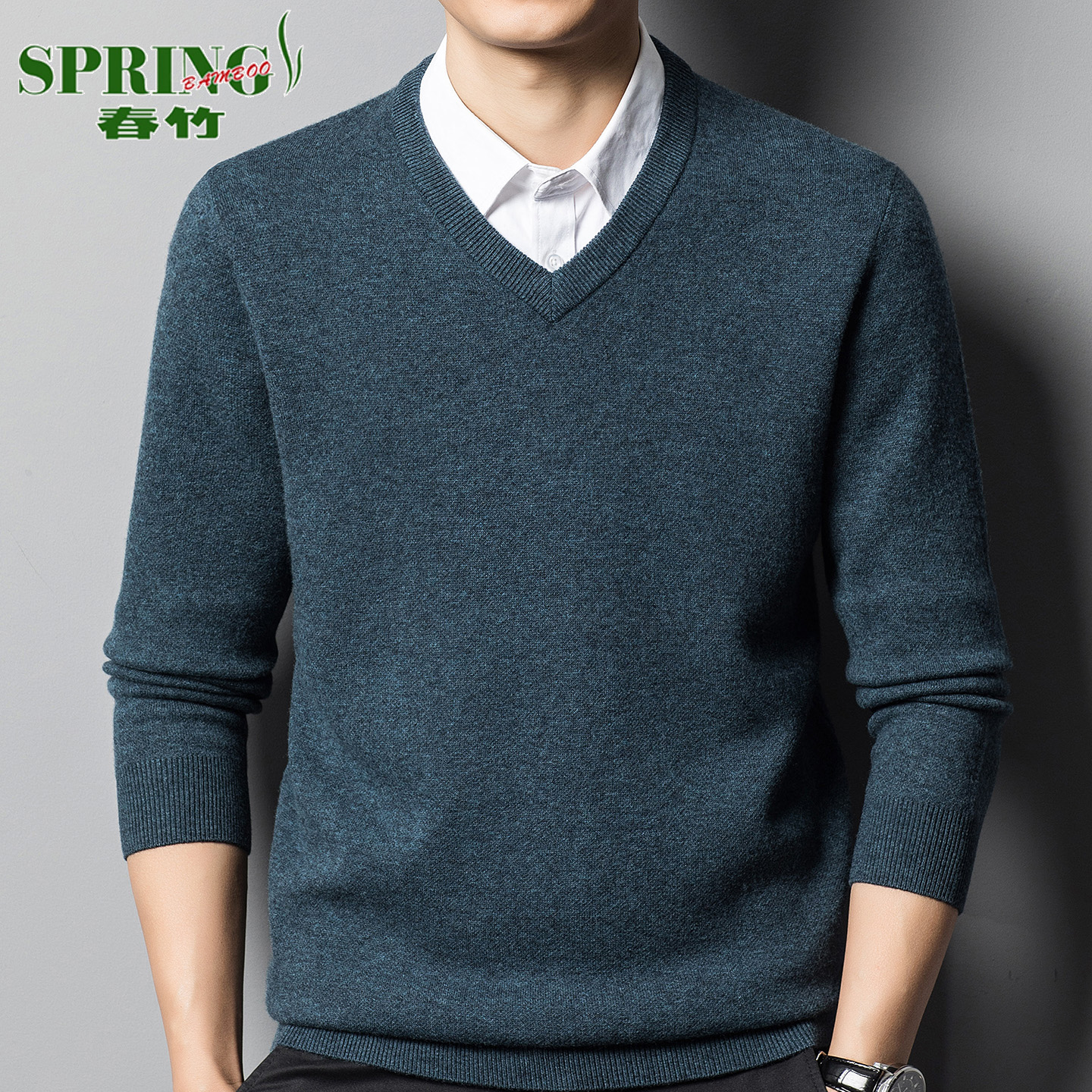 上海春竹100%羊绒衫男V领秋冬加厚中年商务休闲鸡心领毛衣打底衫 - 上海春竹男装