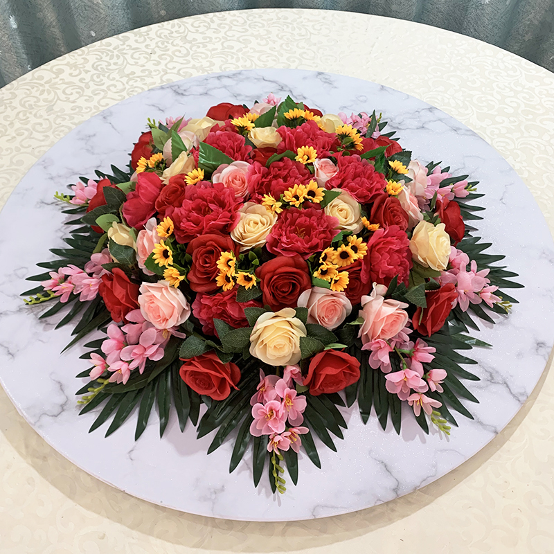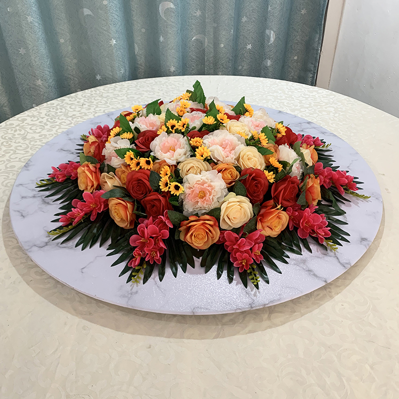 大圆桌花中间转盘摆花高端酒店餐桌花艺摆放牡丹花假花摆花仿真花 - 慧玉花坊