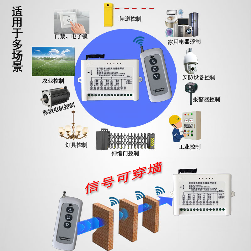 电动门无线遥控继电器开关220v三路道闸幕布工业电柜改装遥控开关 - 英特发电子直销网店