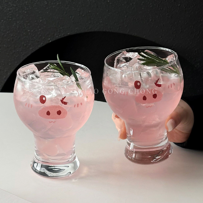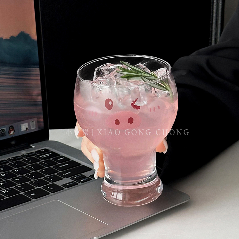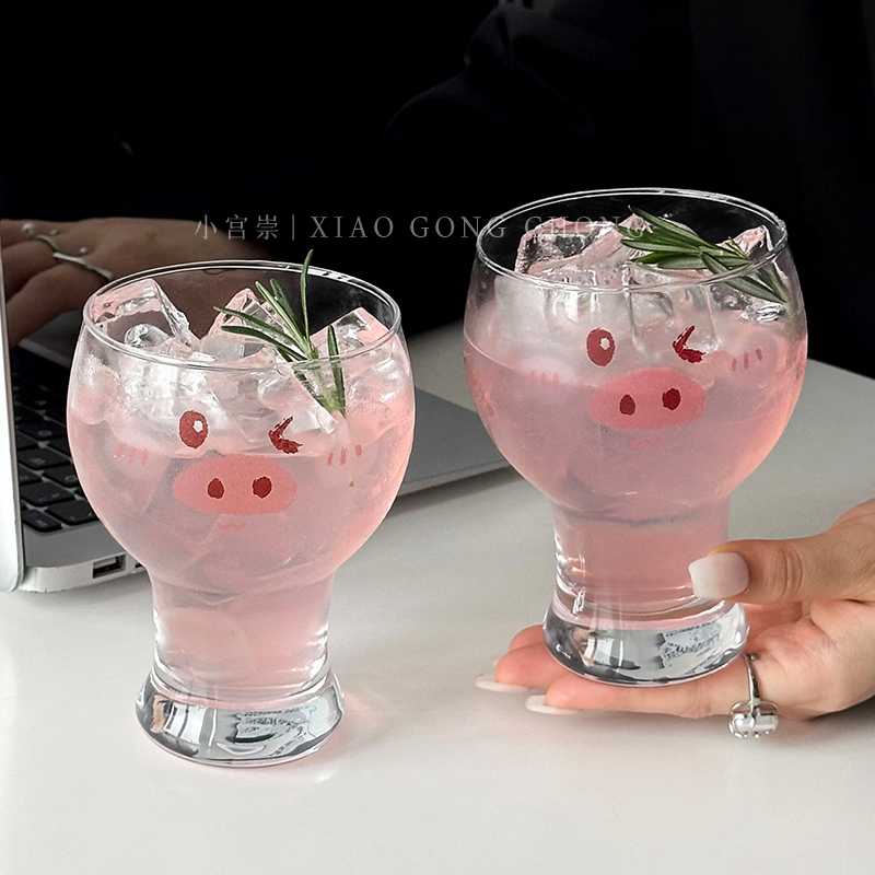 原创啤酒杯个性超萌猪猪玻璃杯女生可爱家用杯子牛奶杯饮料果汁杯 - 小宫崇