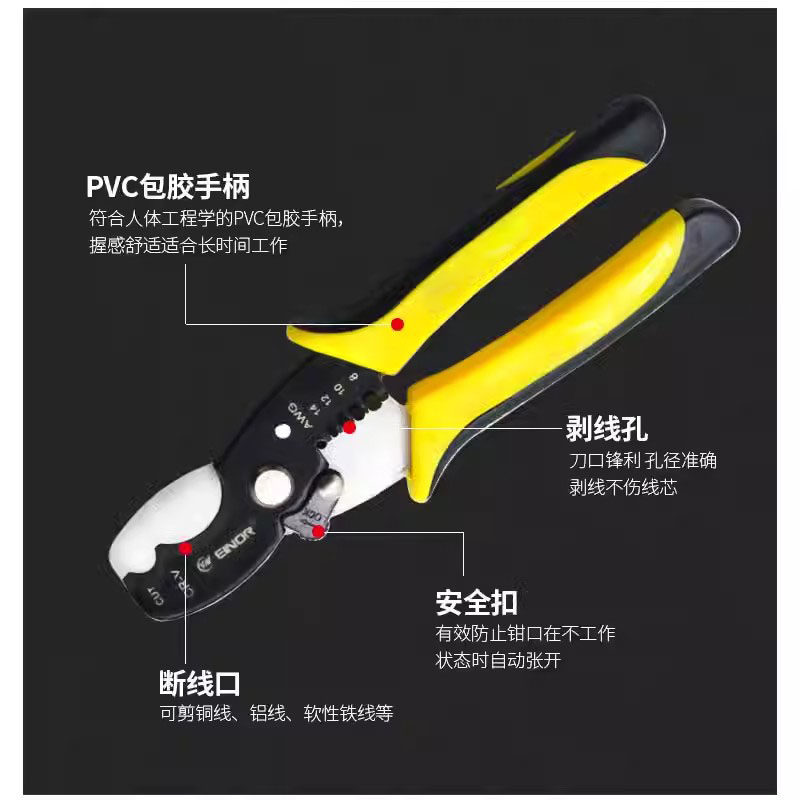 多功能剥线钳电线剥皮电工拔线钳电缆剪光纤剥线压线断线工具 - 博通实验设备