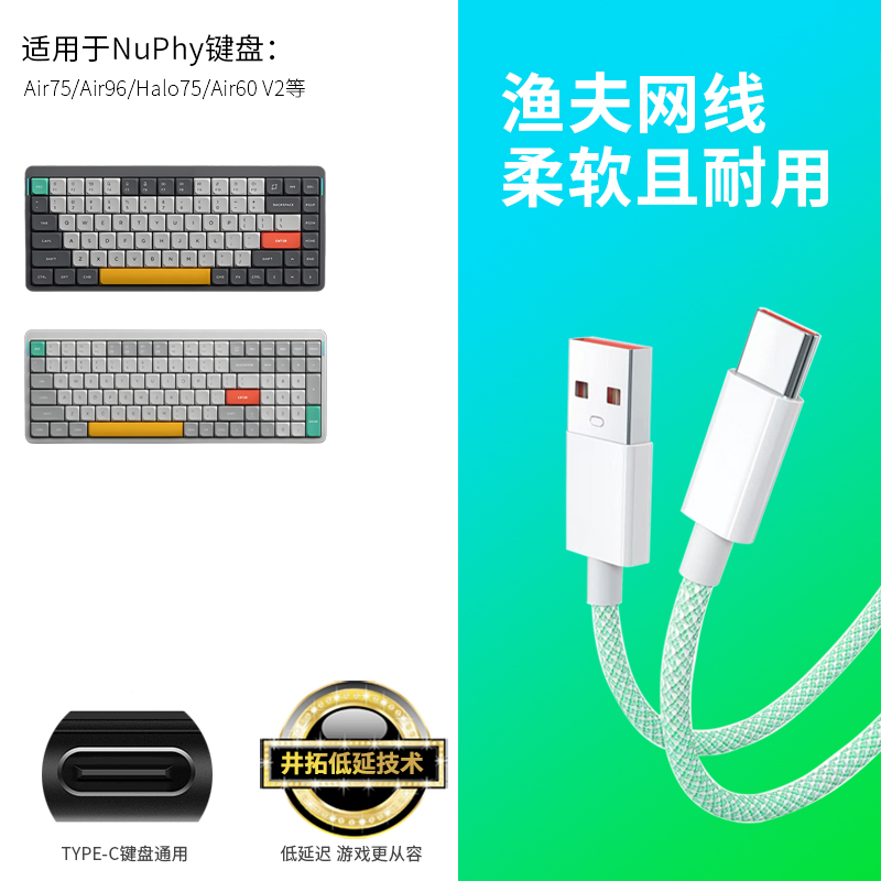 井拓 适用NuPhy无线机械键盘数据线Air75 Air96 Halo75 Air60 V2磁轴键盘连USB电脑充电线TYPE-C充电器线 - 井拓旗舰店