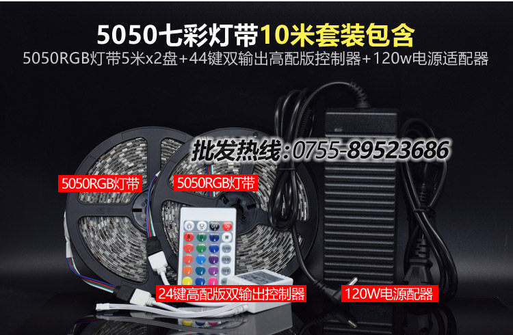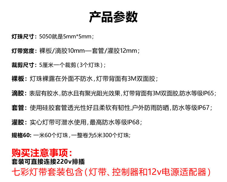 LED灯带套装12v5050变色RGB软灯条七彩变光灯带滴胶防水灯条家装 - 电子时代商城