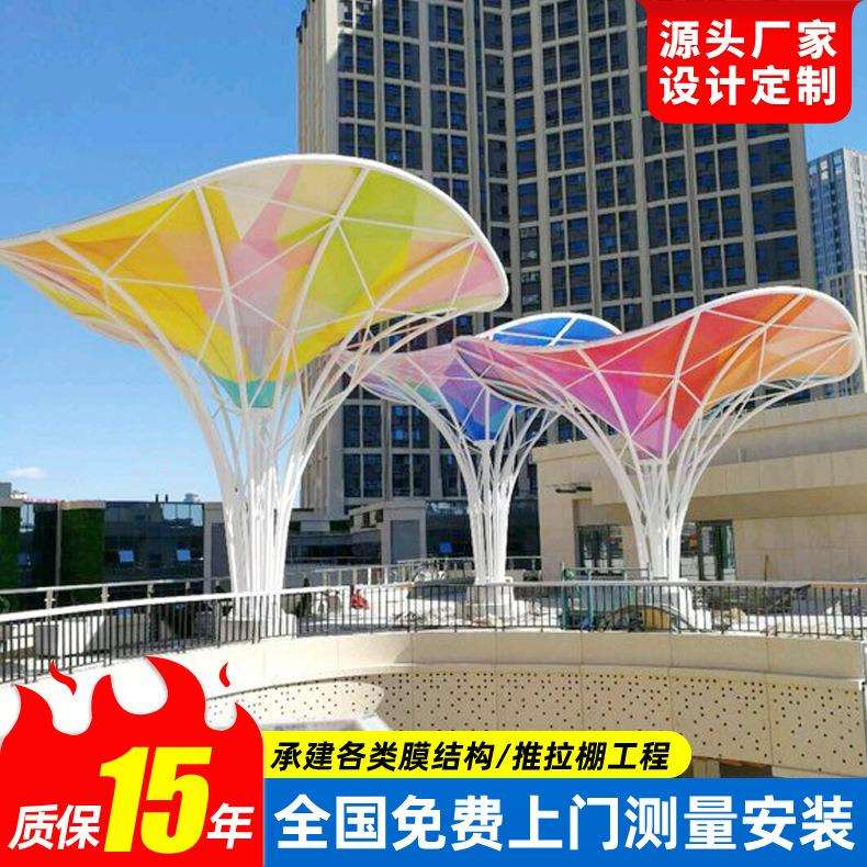 设计彩色张拉膜景观篷 夜晚灯光膜结构景观棚 湖南膜结构景观小品