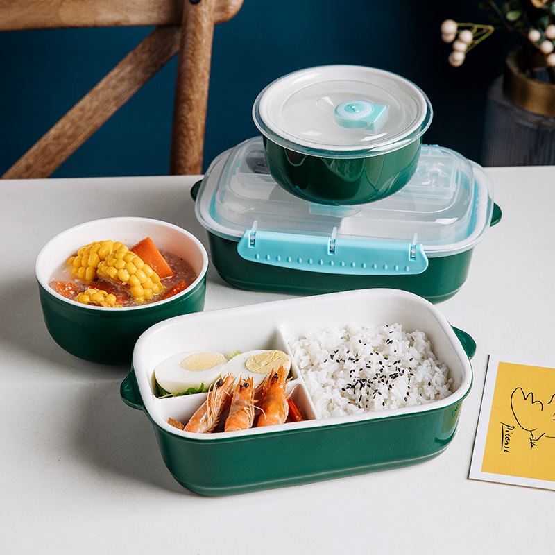 您的位置:他他商城  >  居家  >  微波炉陶瓷饭盒便当盒多格墨绿色带扣密封带盖上班族带饭保鲜碗