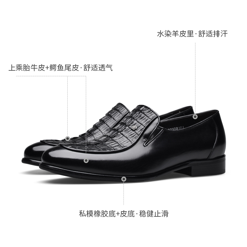 宾度男鞋秋冬季男士商务正装皮鞋男鳄鱼皮圆头高端宴会鞋专柜款 - 宾度方览专卖店