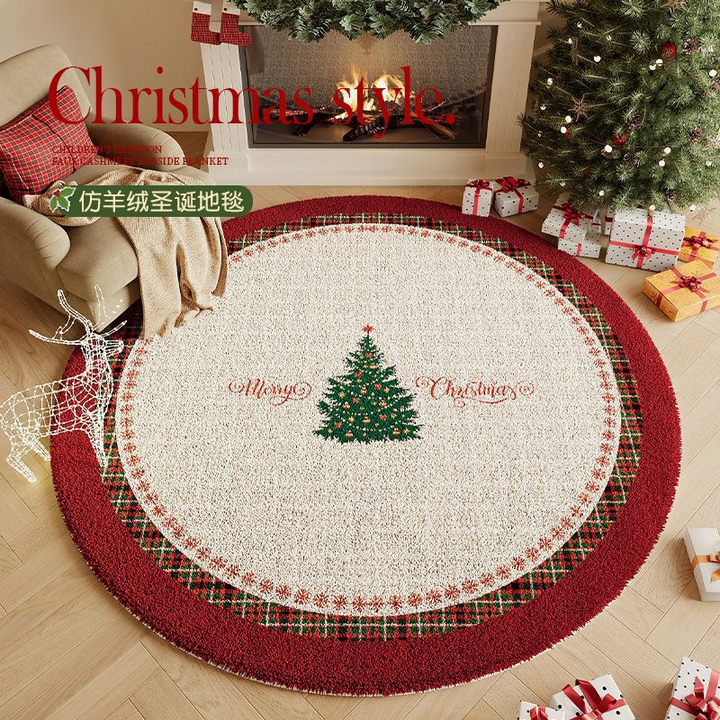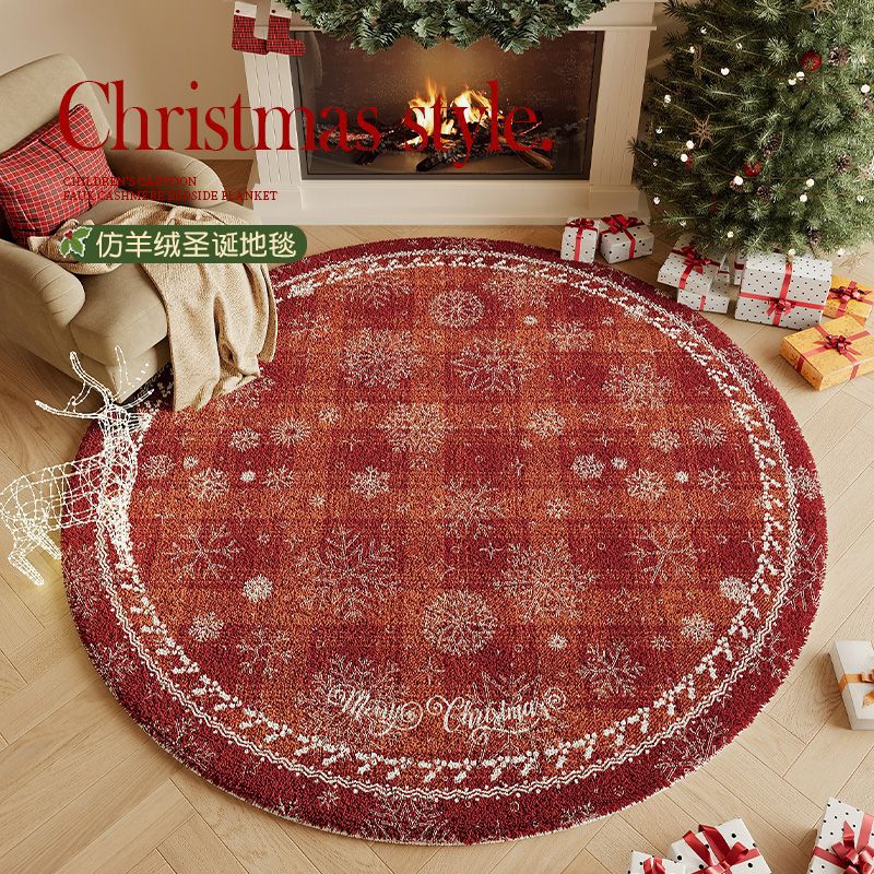 圣诞地毯氛围感圆形客厅仿羊绒加厚茶几毯高级感装饰卧室床边毯子 - 名苑百货