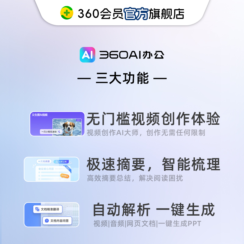 【官旗】360AI办公大会员周卡官方手机号直充AI辅助7天会员 - 360会员圈旗舰店