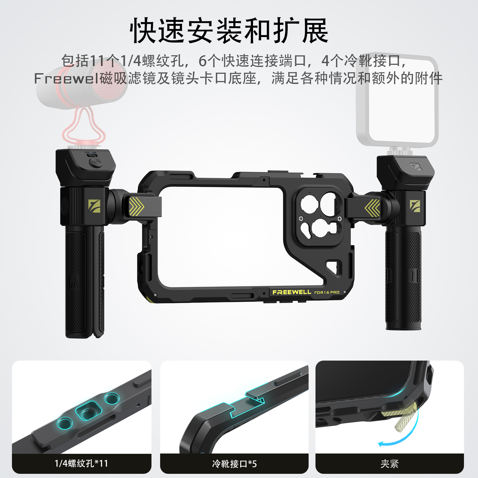 FREEWELL菲尔威苹果手机兔笼17promax 16pro兔笼硬盘支架手柄 - FREEWELL菲尔威滤镜