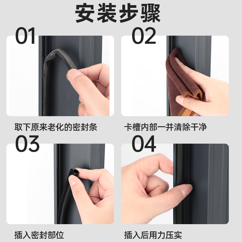 老式塑钢窗密封胶条断桥铝平开门窗卡槽式窗户防漏风缝隙专用防冻 - 泓颉家居专营店