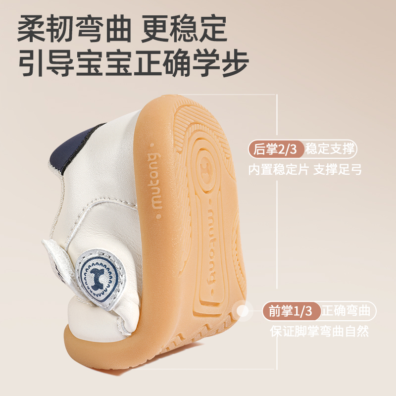 牧童婴儿鞋子秋季新款男童超纤皮面宝宝机能鞋儿童学步软底女童鞋 - 牧童官方旗舰店