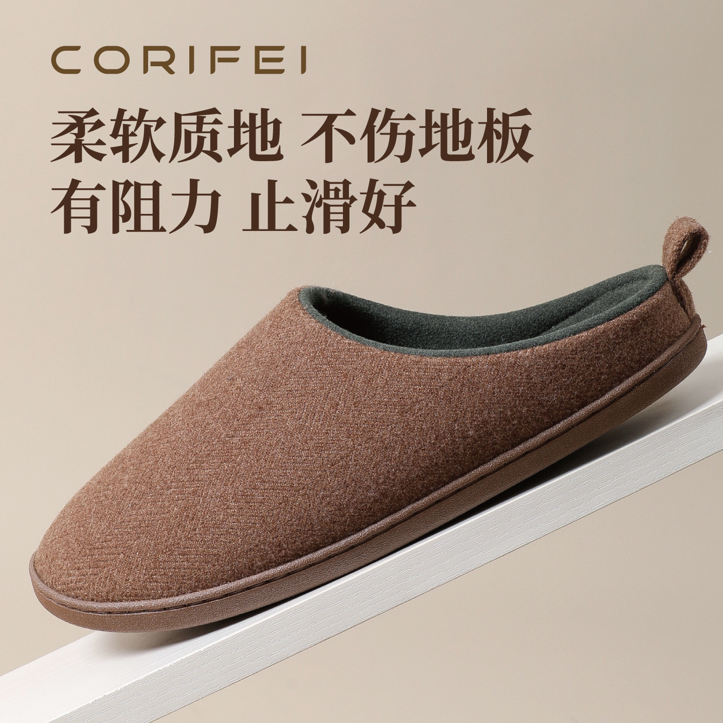 家丽芙2025秋冬可拆卸棉拖鞋男士家居厚底软底防滑保暖居家拖 - CORIFEI家丽芙旗舰店