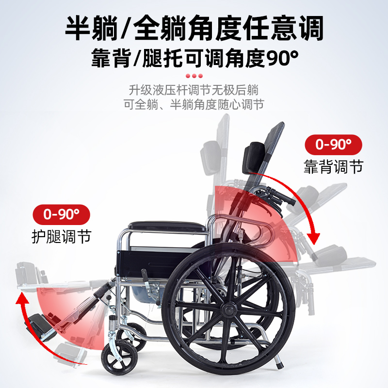 轮椅老人专用轻便折叠带坐便器医院同款手推车老年人助行器代步车