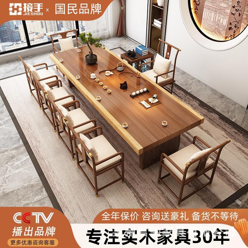 新中式实木茶桌全套原木功夫泡茶桌简约一体茶台家用办公室茶桌椅