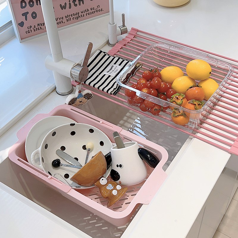 家用厨房可伸缩沥水篮q蔬果盆双层两用洗菜篮少女心可爱厨房用品 - tb6358714696