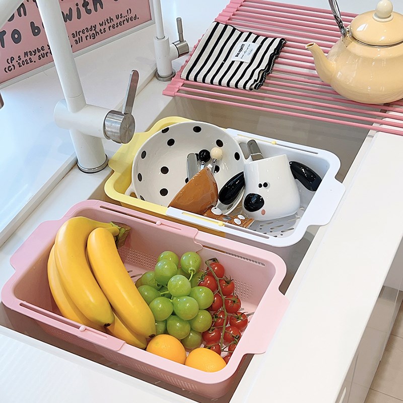您的位置:他他商城  >  居家  >  家用厨房可伸缩沥水篮q蔬果盆双层两用洗菜篮少女心可爱厨房用品
