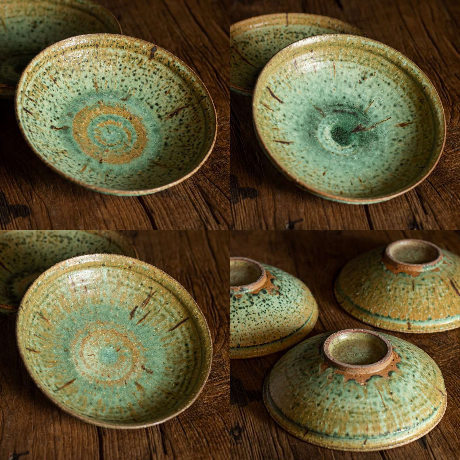 柴绿粉引圈足斗笠盘复古手工窑变粗陶菜盘水果盘茶点盘点心盘