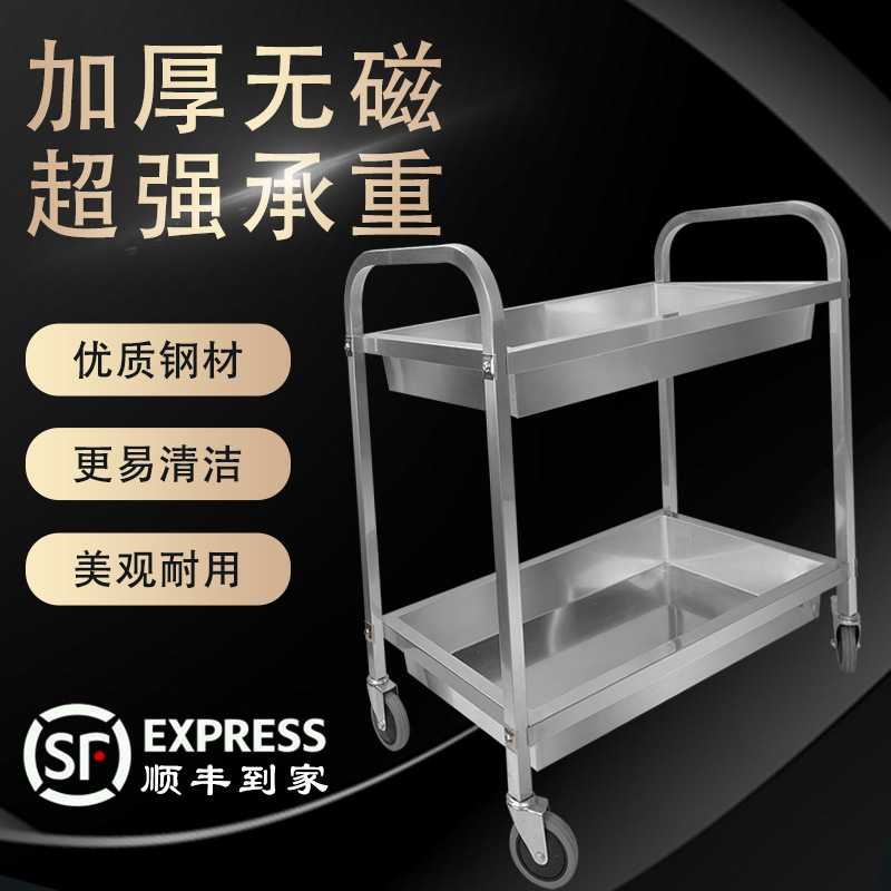新款直销米凯加厚不锈钢收碗车双层万向轮上菜车冰粉车静音餐厅酒