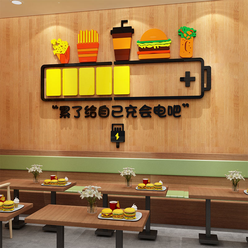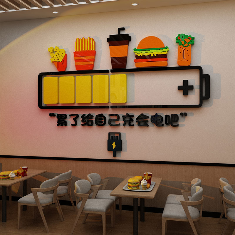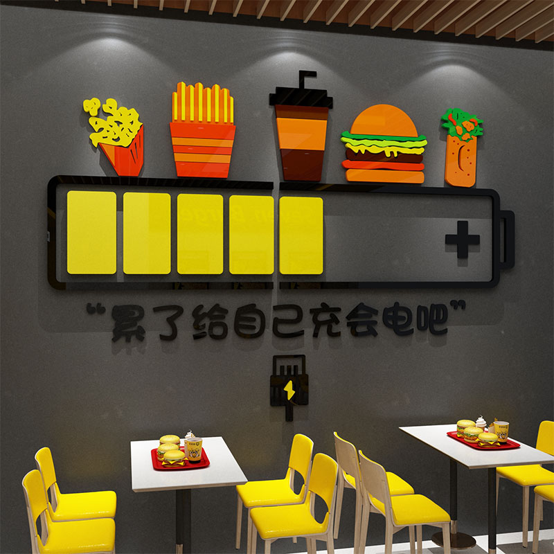 网红打卡炸鸡店汉堡奶茶餐厅墙面装修饰吧台布置海报广告纸贴挂画