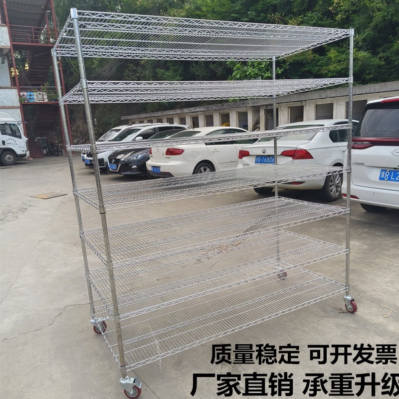 定制移动货架不锈钢仓储货架宽0 带轮多层金属网格物料架可拆卸 - 天河箱包行