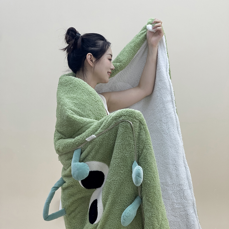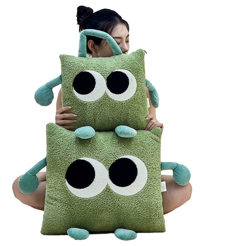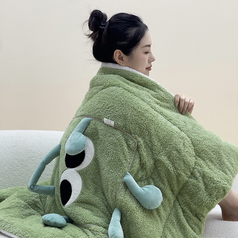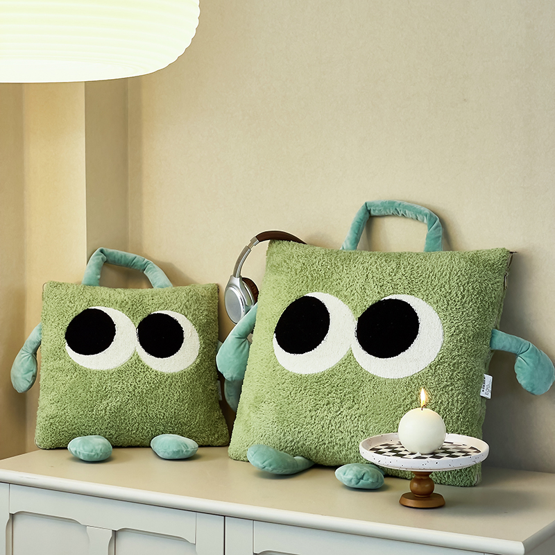 手拎款!加厚加绒大眼仔抱枕被子两用车上枕头被办公室午休盖毯靠 - 德洛娜家居 专注办公室健康用品