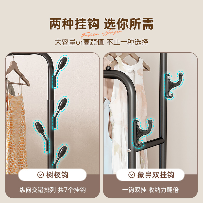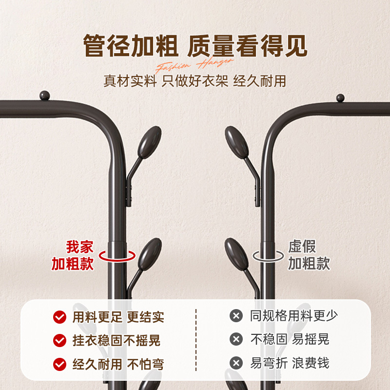 晾衣架落地式家用学生宿舍折叠卧室内晒挂架子置物衣帽架碳钢加厚