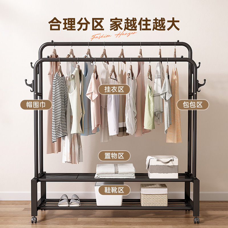 晾衣架落地式家用学生宿舍折叠卧室内晒挂架子置物衣帽架碳钢加厚 - 温诗欧润日专卖店