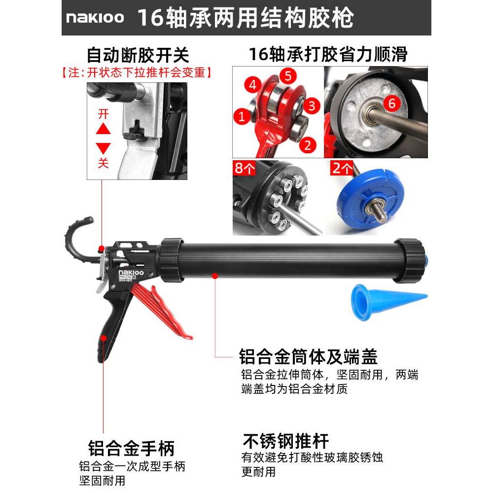 nakioo新款省力旋转轴承胶枪结构胶枪自动断胶胶枪玻璃胶打胶神器