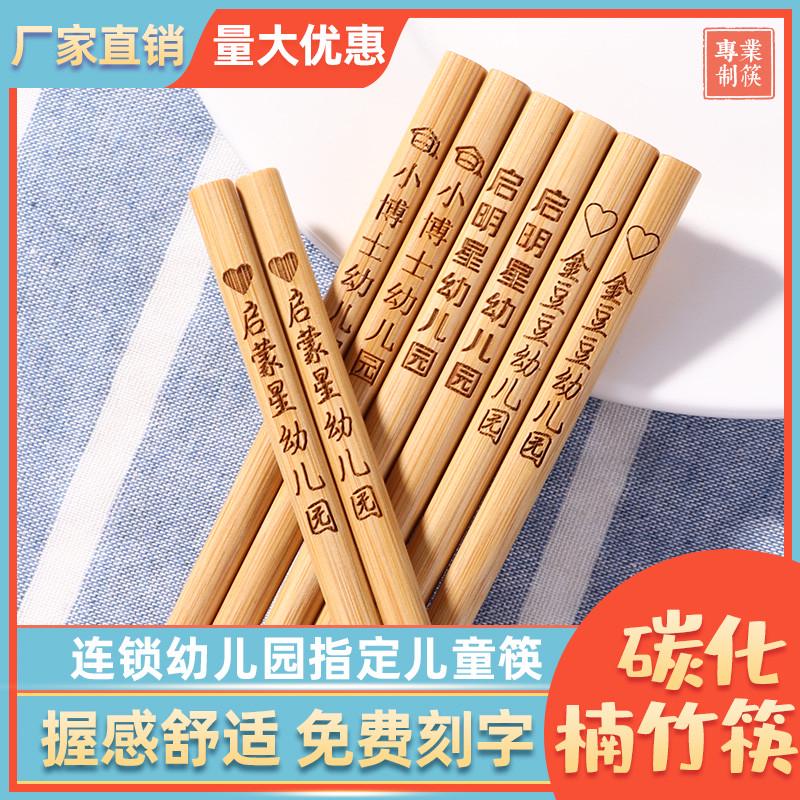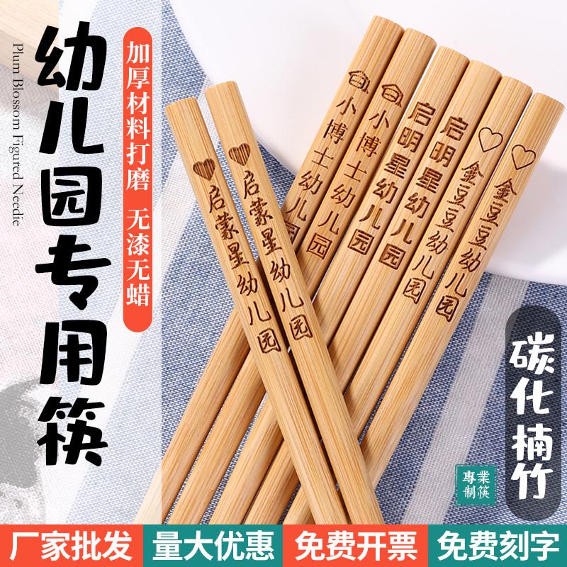 儿童筷子竹筷幼儿园专用短款无漆无蜡实木小孩吃饭训练筷刻字定制 - 凯敏精品家具
