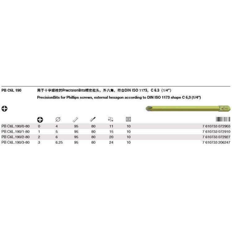 瑞士PB SwissTools   C6.3加长十字批头  PB C6L.190/3-80