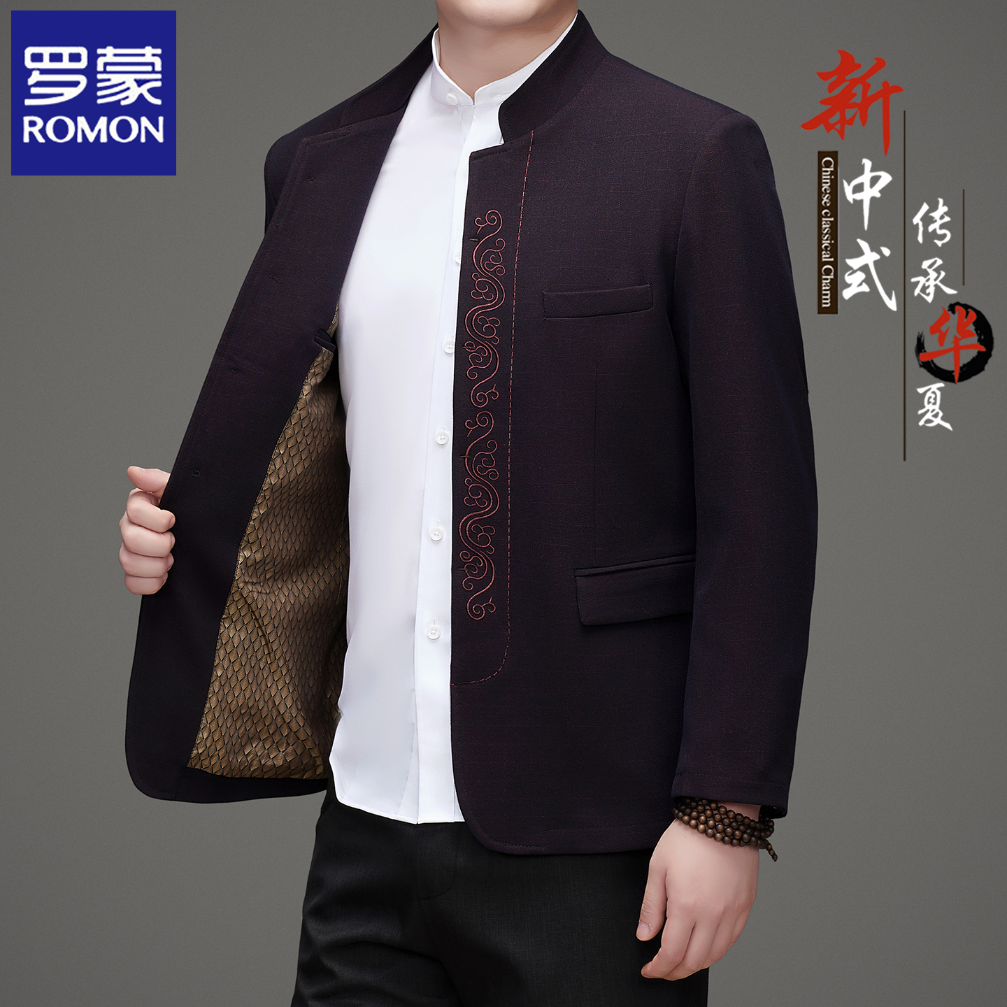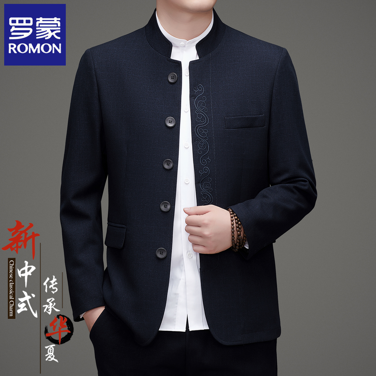 罗蒙春秋季男士唐装中国风立领中山装西服套装中老年爸爸礼服外套 - 罗蒙高端男装精品店