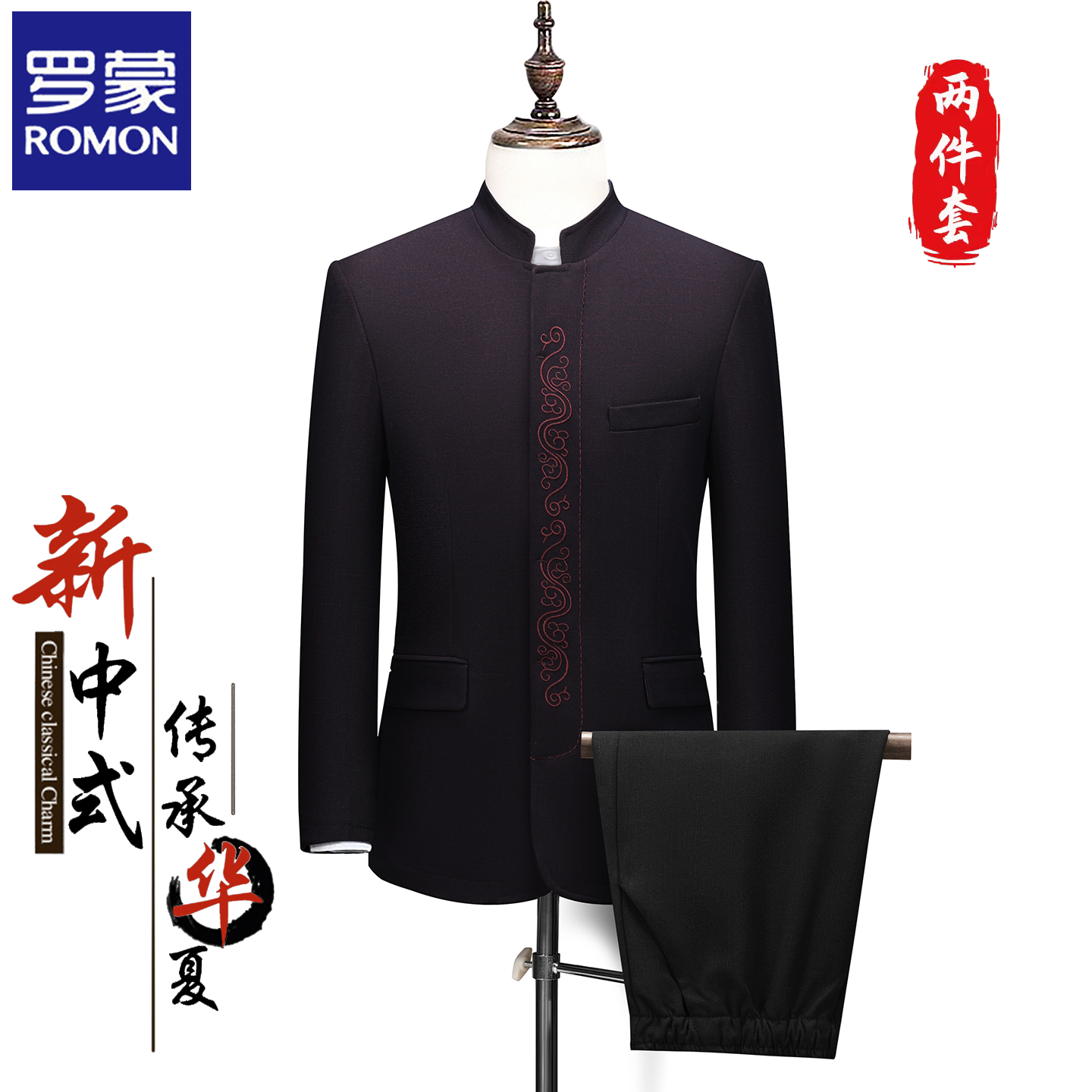您的位置:他他商城  >   >  罗蒙春秋季男士唐装中国风立领中山装西服套装中老年爸爸礼服外套