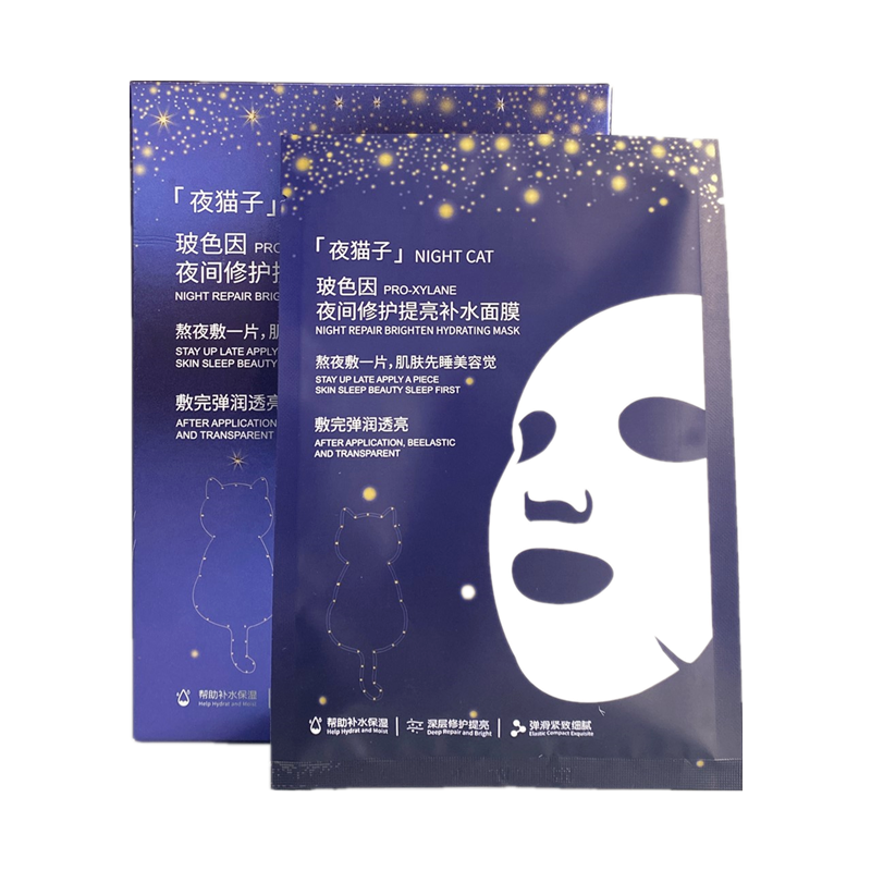 夜猫子玻色因夜间修护提亮补水面膜舒缓保湿熬夜蚕丝超薄面贴男女 - 华粤美妆护肤批发店